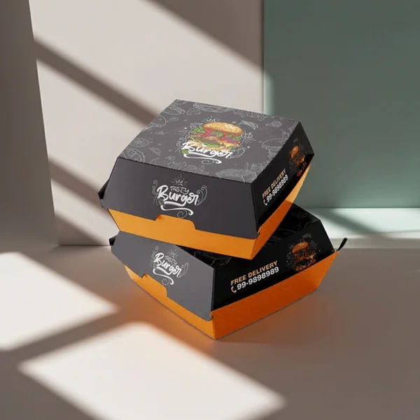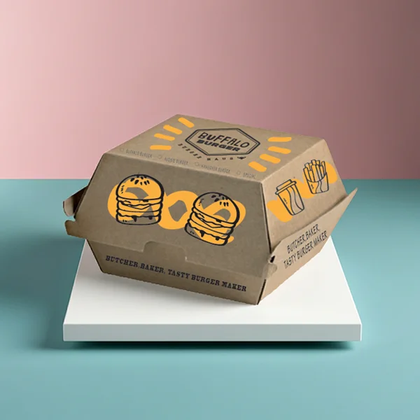 Serve burgers in style with custom burger boxes. Durable, printed, and food-safe, they keep patties warm, maintain presentation, and attract attention on counters. Perfect for fast-food outlets or delivery, these boxes enhance customer experience while reinforcing brand professionalism and appeal.